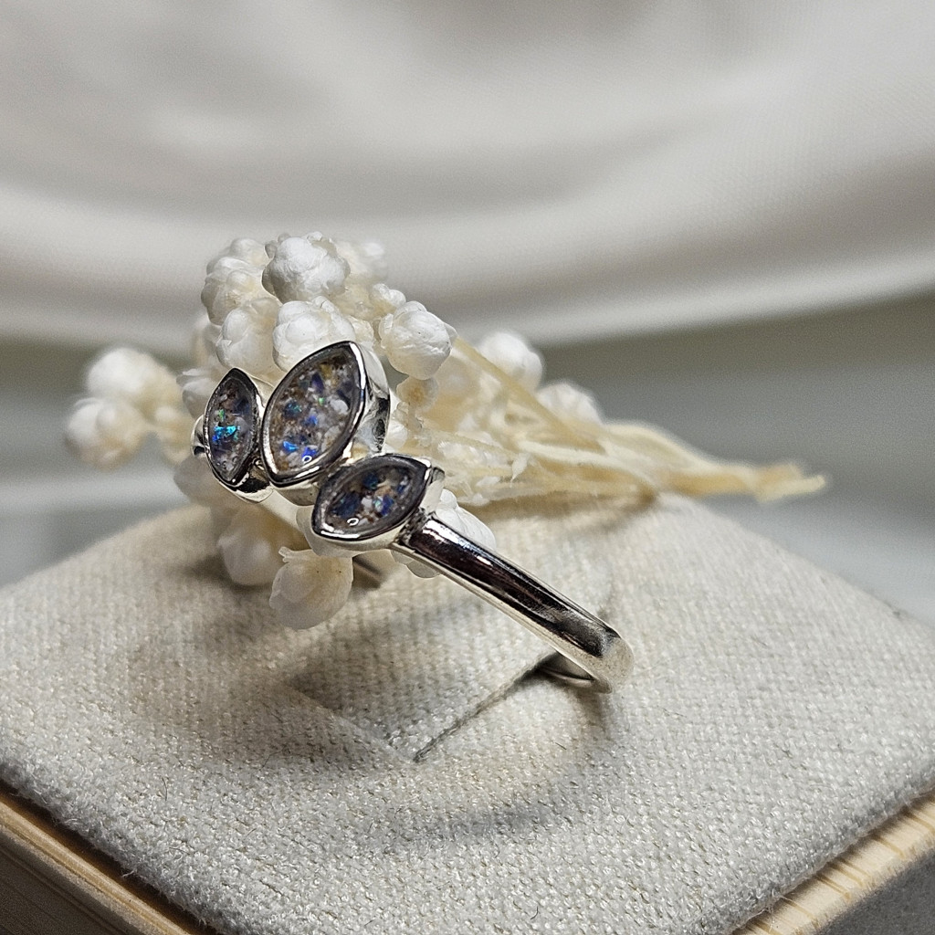 Az apró opálszemcsék szivárványszerű csillanása azt az érzést kelti, mintha a szeretett személy lelke lágyan tovább ragyogna minden napunkban. Minden egyes gyűrű egyedi, hiszen a benne rejlő anyag is az – egy élet története, egy kapcsolat emléke.